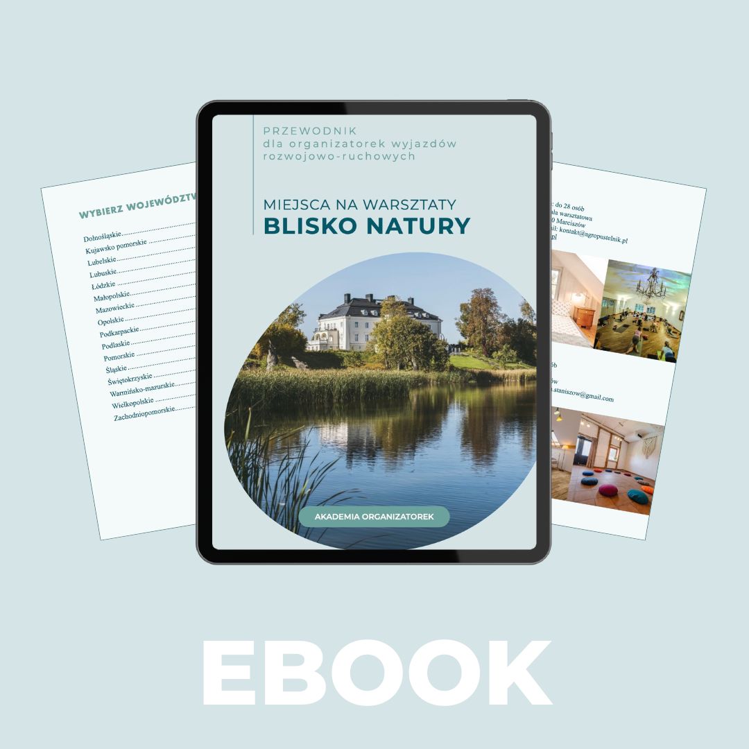 Ten ebook to nie tylko lista miejsc, ale też źródło inspiracji, które pomoże Ci tworzyć wyjazdy z duszą – takie, które przyciągają odpowiednich ludzi i stają się niezapomnianym doświadczeniem dla Ciebie i Twoich uczestników.